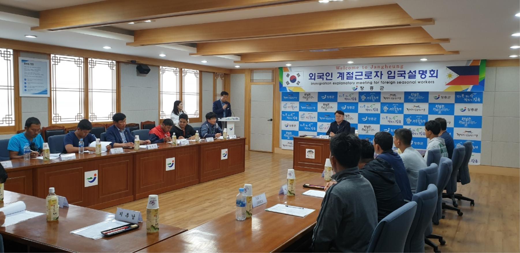 입국설명회에서 한동희 장흥군 부군수는 “체류 기간 동안 가족과 같이 따뜻한 분위기 속에서 좋은 교류가 있길 기대한다”며, “농촌 일손부족 해소와 한국의 선진 농업기술 전수 등 양국 모두에게 도움이 될 수 있길 바란다”고 말했다.