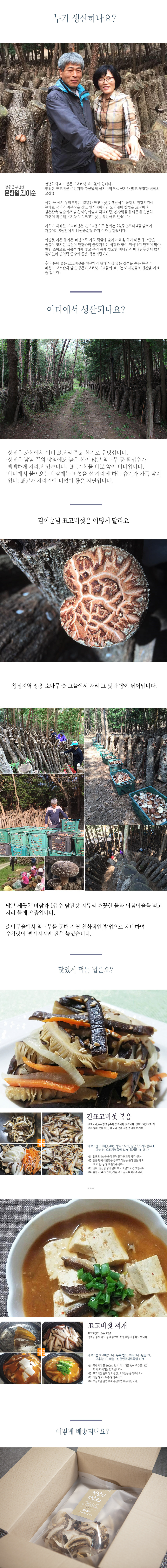 전남 장흥군은 한반도 남녀 끝의 땅입니다. 그 앞은 바다이고 뒤로는 산들이 제법 높으며 산에는 참나무가 빽빽하여 표고버섯이 맛있게 잘 자랄수 있는 자연입니다. 장흥표고버섯은 전라남도 장흥 청정지역 소나무 숲에서 아침이슬을 먹고 자란 국내 최고의 명성을 자랑합니다. 참나무를 통해 자연친화적인 방법으로 재배하여 수확량은 떨어지지만 품질이 좋아 그 맛과 향이 뛰어 납니다, 산림청 지리적표시등록 제2호에 빛나는 정남진 장흥군 임산 특산물 장흥표고버섯은 참나무 원목에서 맑은 공기, 숲, 이슬이 키워내 전국 최고의 맛과 품질을 자랑합니다.