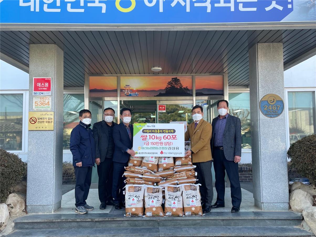 장흥군 용산농협 김성용 조합장은 19일 취약계층을 위해 직접 농사 지은 쌀 10kg 60포(150만원 상당)를 용산면행정복지센터에 기탁했다.