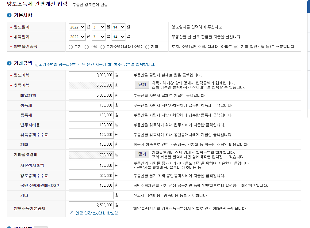 정말 양도세가 궁금하신분들은 실제 금액에 맞게 해당란에 금액을 입력해보세요