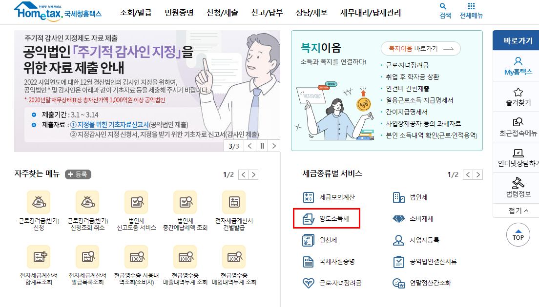 국세청 홈택스에 접속합니다.
