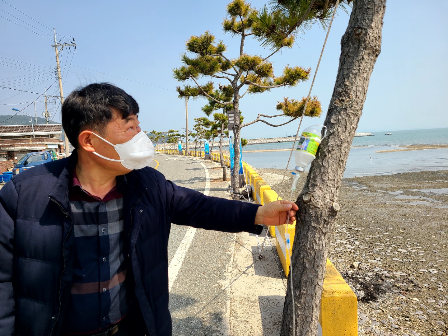군은 우선 소나무들을 보호하기 위하여 올 2~3월 대덕읍 분토리 일대에 솔껍질깍지벌레 나무주사 사업을 시행했다