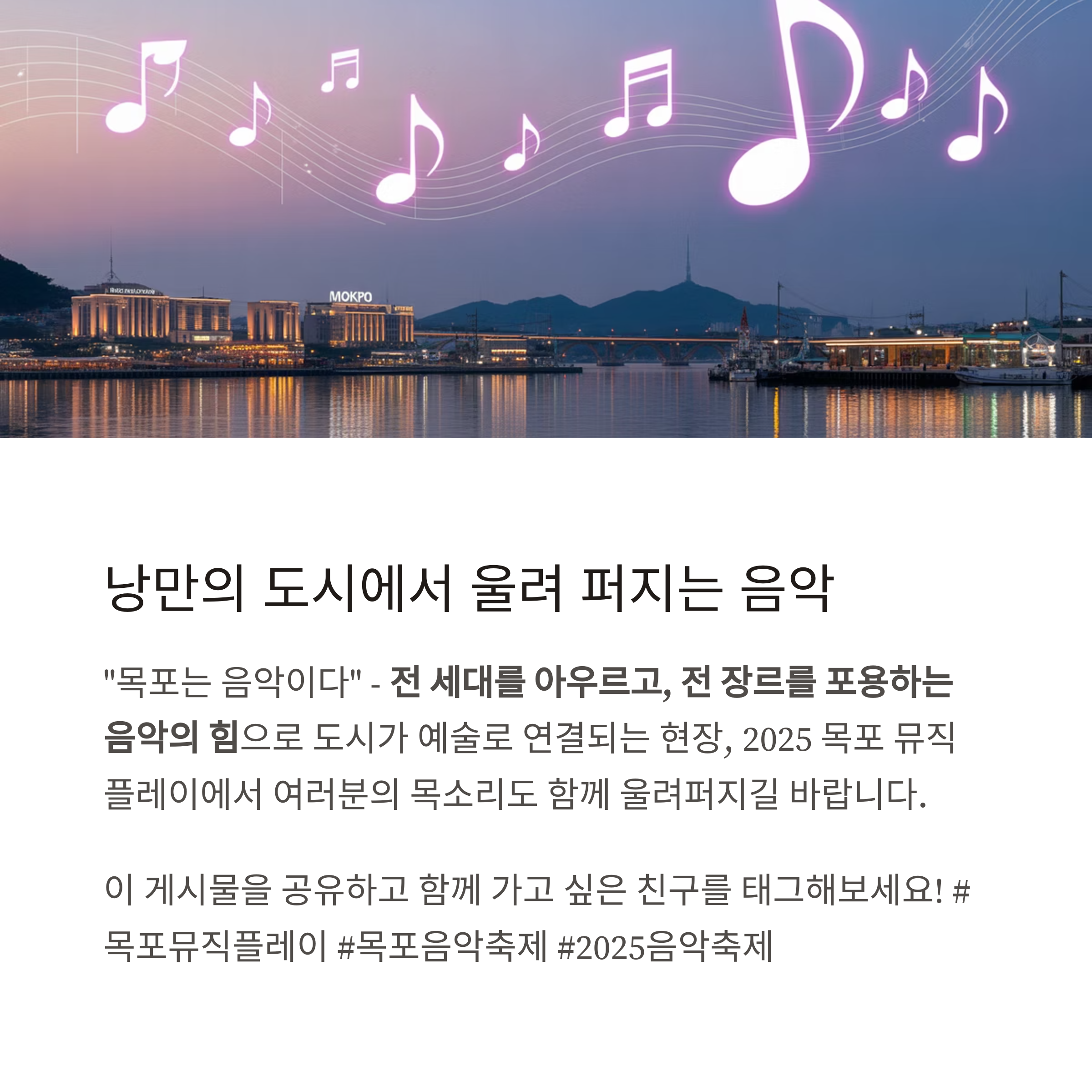 도시가 예술로 연결되는 현장이 바로 2025 목포 뮤직플레이입니다.