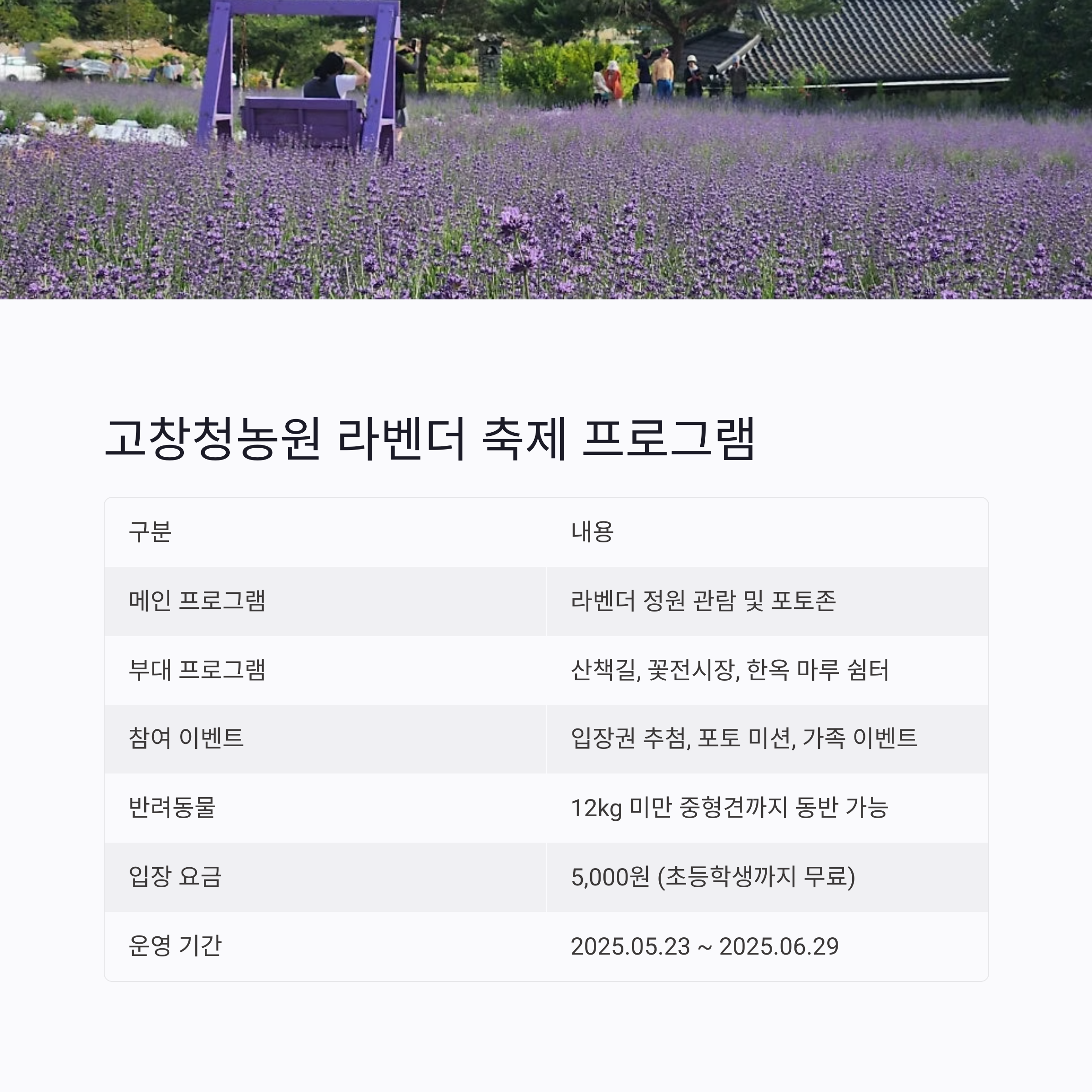 | 메인 프로그램 | 라벤더 정원 관람 및 포토존 즐기기 |