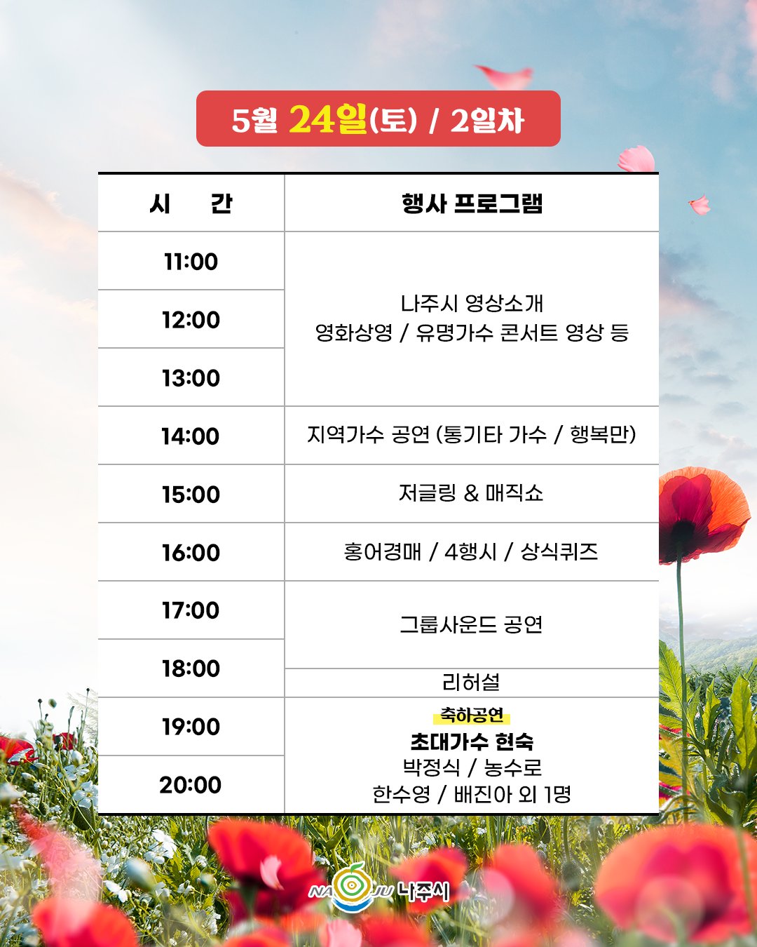다양한 장르의 공연과 지역가수 무대도 함께 구성되어 음악 팬들에게도 특별한 추억이 될 것입니다.