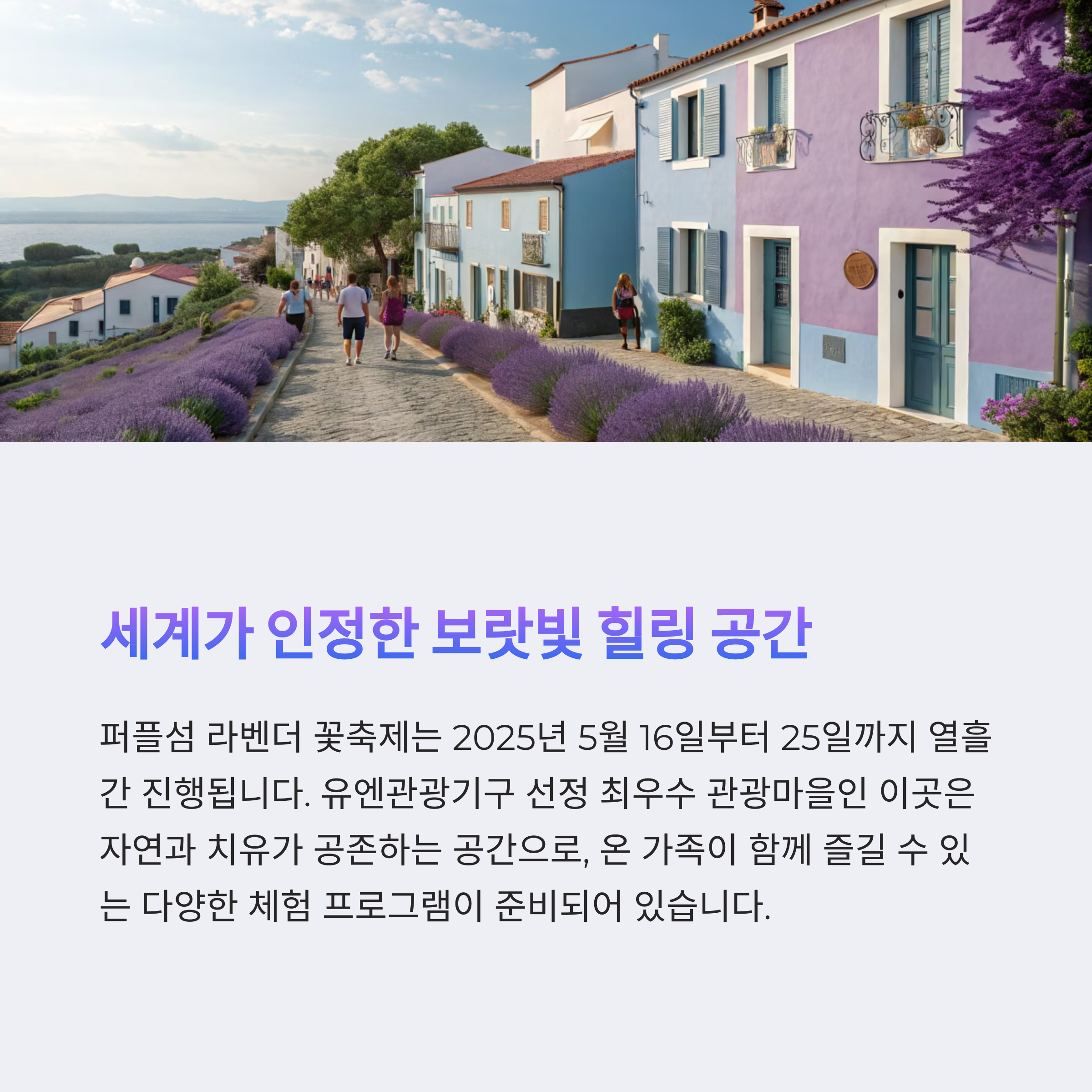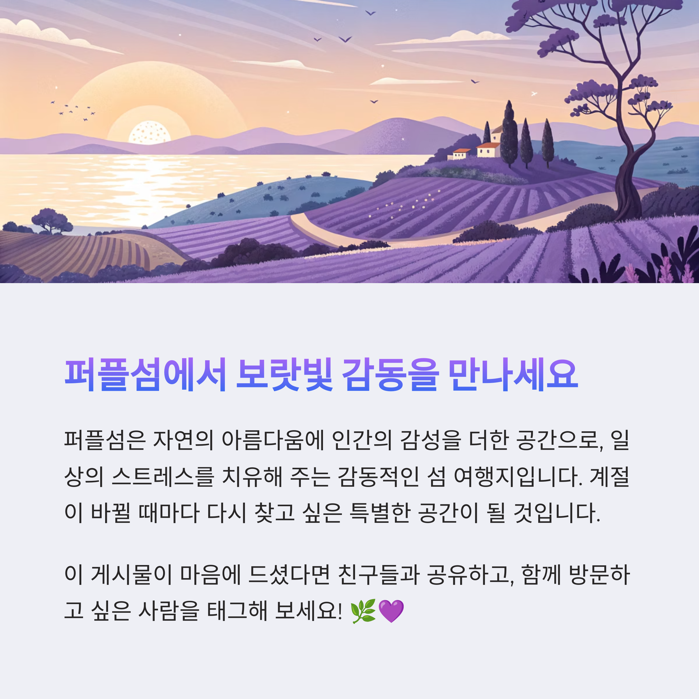 "보랏빛 바다와 라벤더 정원의 조화는 단순한 관광을 넘어선 치유의 시간입니다."