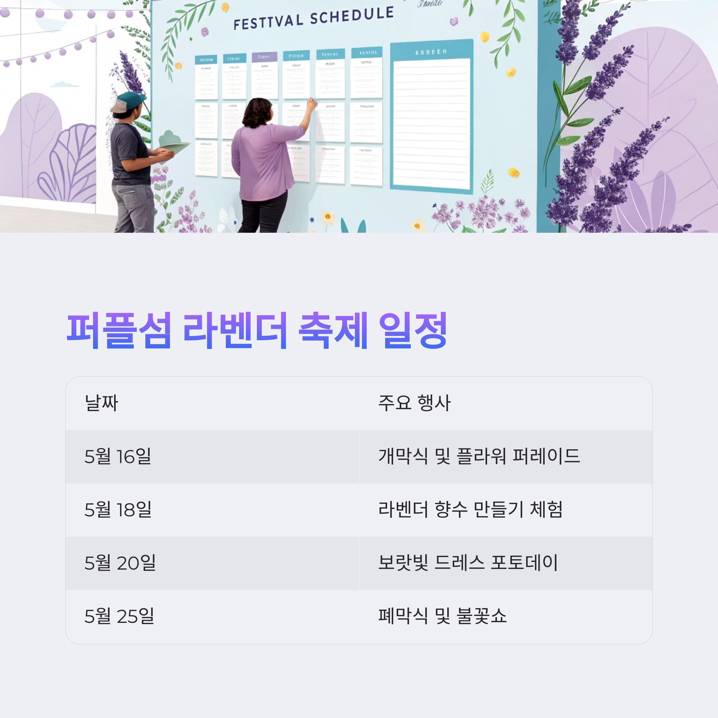 짧은 일정표로 살펴보는 퍼플섬 라벤더 축제